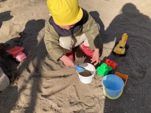 穴を掘ったり山を作ったり、ケーキ、プリンなど作りましたよ。