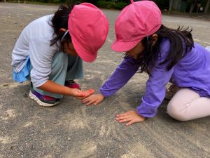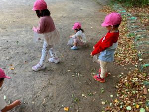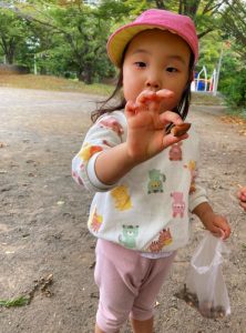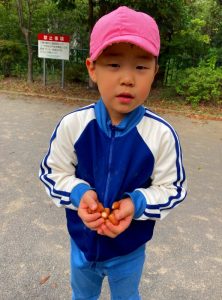 広場にはたくさんのどんぐりがあり、みんな集めるのに夢中でした!