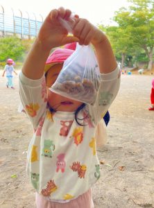 袋いっぱいのどんぐりに満足そうな笑顔の子ども達でした。