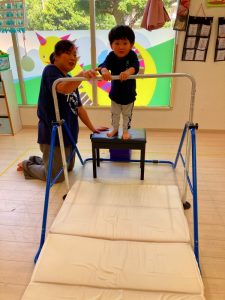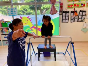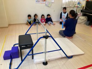 鉄棒の握り方や腕を伸ばすなど基本的な動きを学びましたよ。