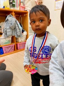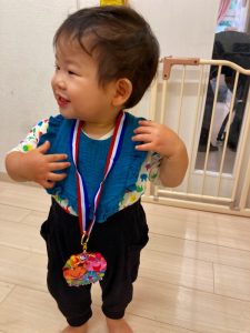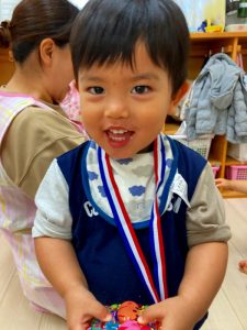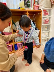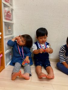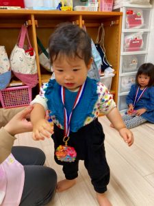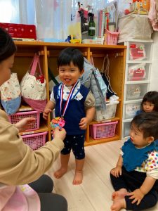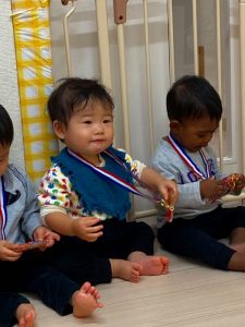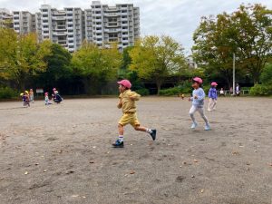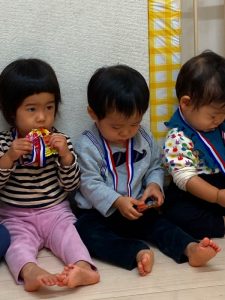 お名前を呼ばれてお返事をして「よーいドン」に合わせて走ります。