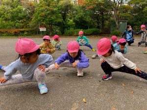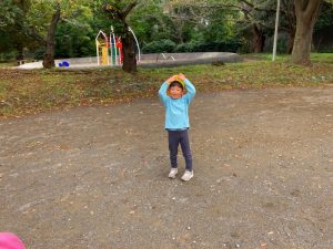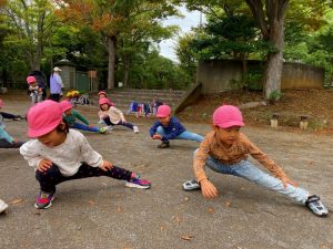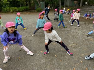 ・・・その前に寒いと言っていたお友達がいたので準備体操をして身体を温めます。