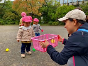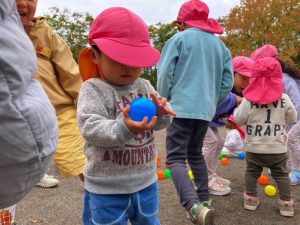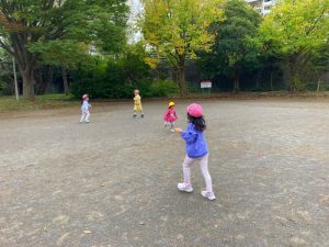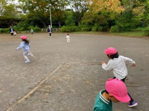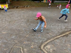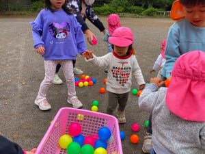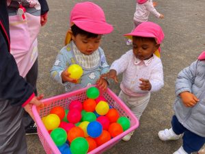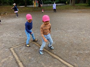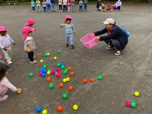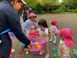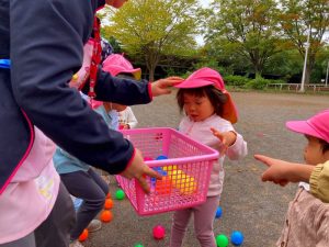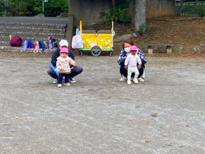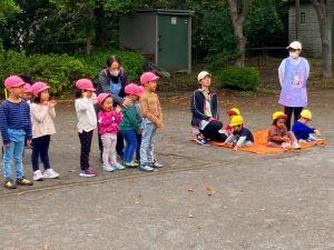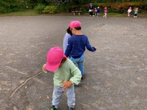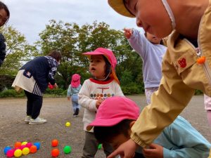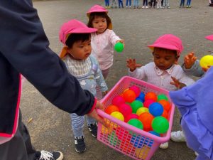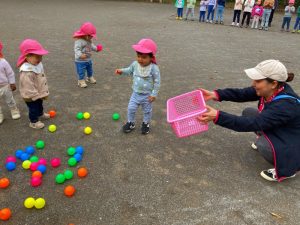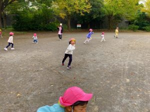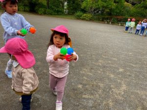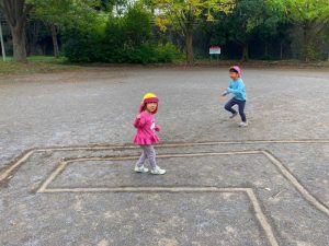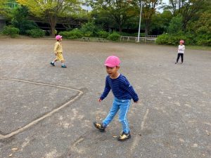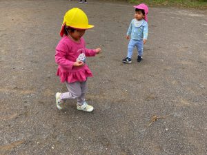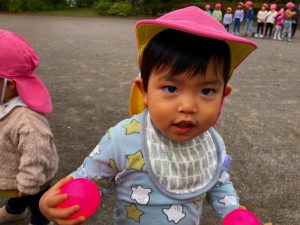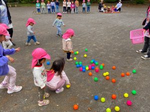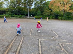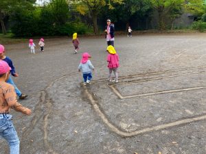 今日は広場でちゅうりっぷ・すみれ組さんの運動会ごっこをしてきました😊
