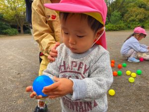 シャボン玉を追いかけたり、ミミズの観察をしたり、お友達と追いかけっこをしたりそれぞれ楽しそうに遊んでいました☺
