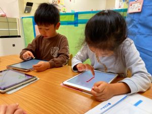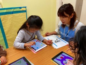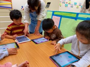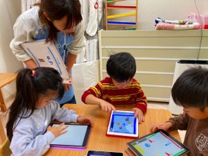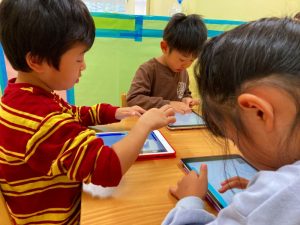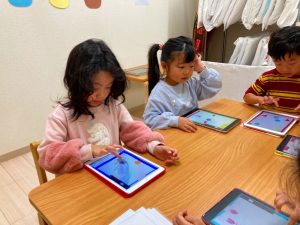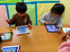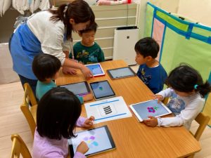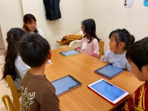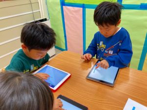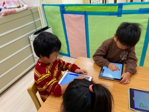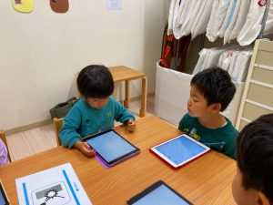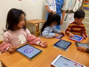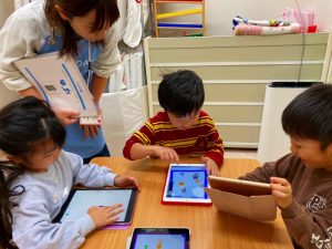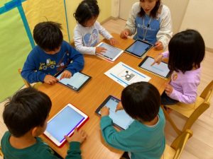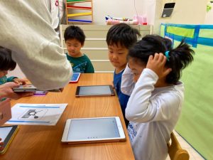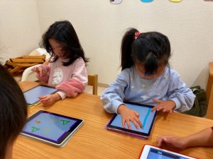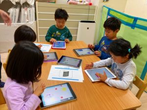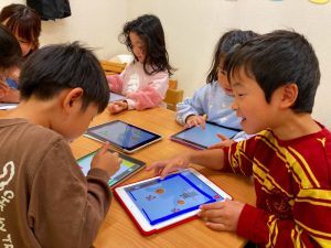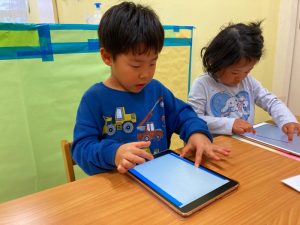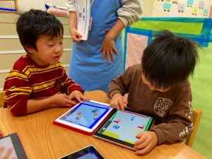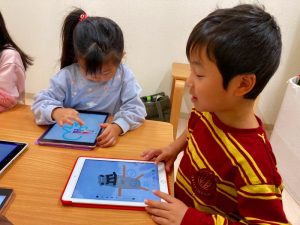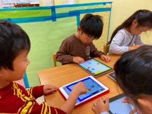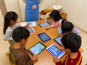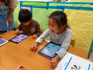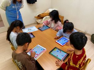 自分たちが描いた絵を使ってゲームを作って遊んでとっても楽しそうな子ども達です♪