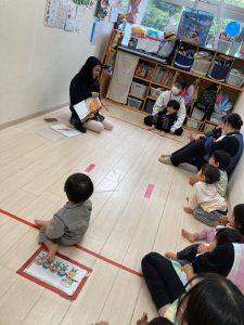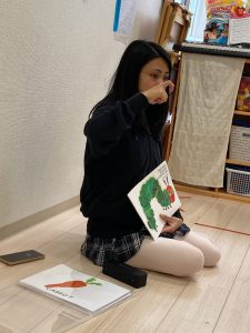 最後に、みんなが大好きな『はらぺこあおむし』の絵本を読んでもらい嬉しそうに見ていた、ちゅうりっぷ・すみれ組さんでした✨