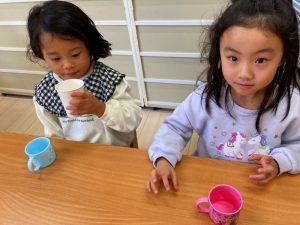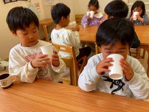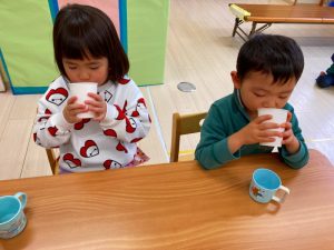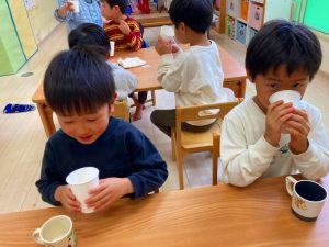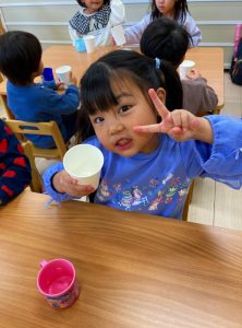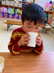 今日はこの試飲会で興味がわいたようで給食のスープの進みが良かったです☺