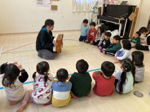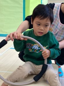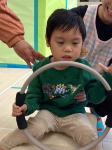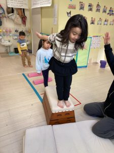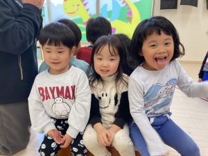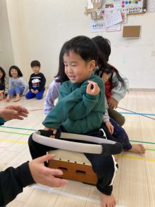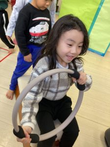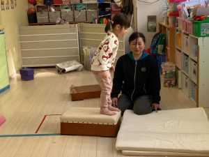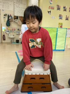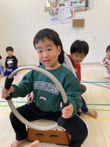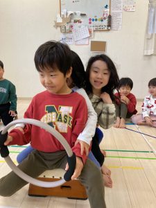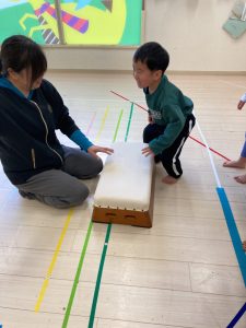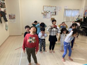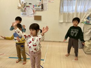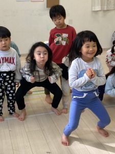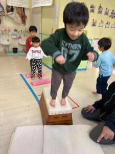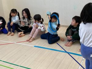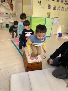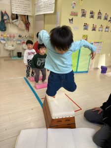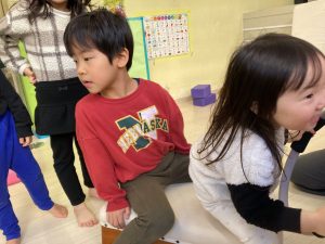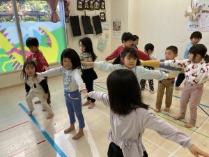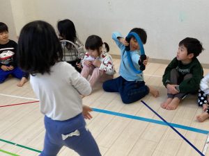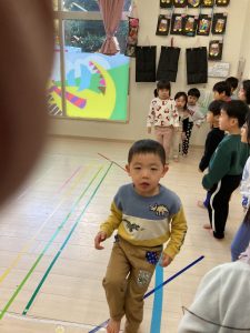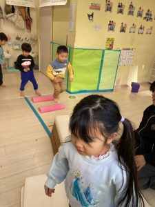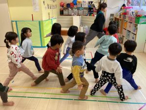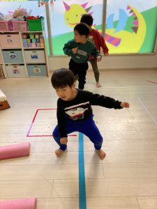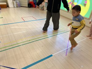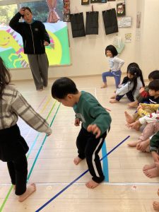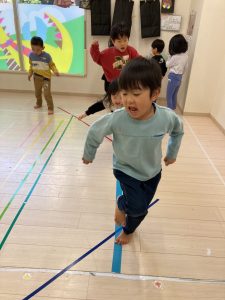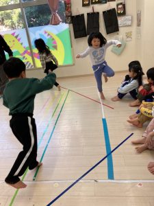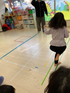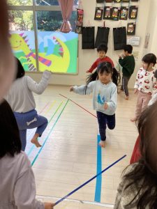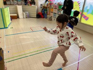 床に貼ってあるテープの上をけんけんするのも盛り上がっていました🎵