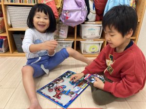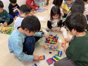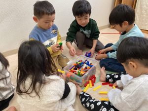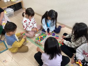 今日は、体操の前にお部屋でお友達とコロコロドッヂボールやブロック遊び、パズルや絵本を楽しみました🎵