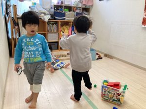 友達と「貸して」「いいよ」と簡単な言葉のやり取りをしながら、遊べるようになってきました😊