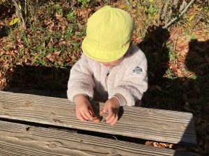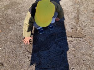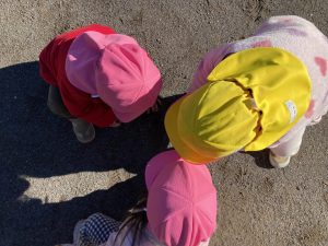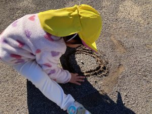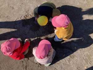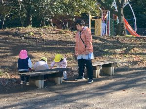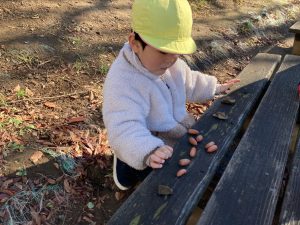 たんぽぽ組さんは、保育者や友達と追いかけっこをしたり、どんぐりを集めてお店屋さんごっこをしたり、地面に丸や線を描いたりして楽しみましたよ♪