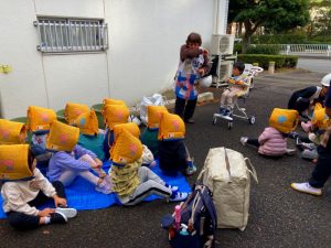 地震からの火災の想定で行いました。子ども達は少し緊張している姿もありましたが静かに上手に避難することが出来ていましたよ!