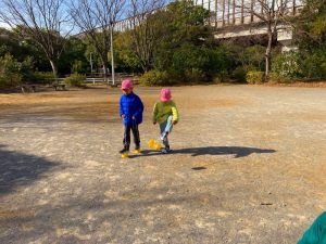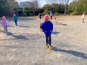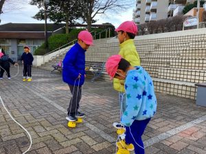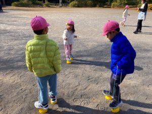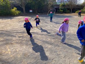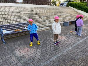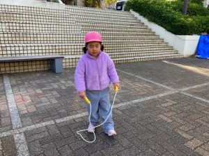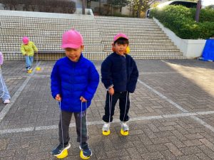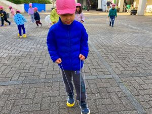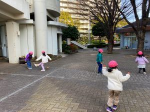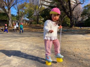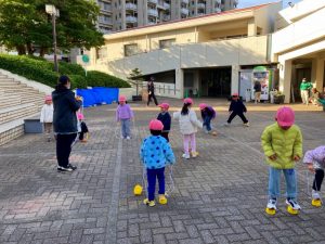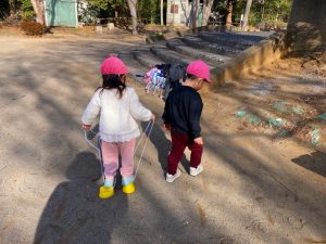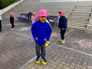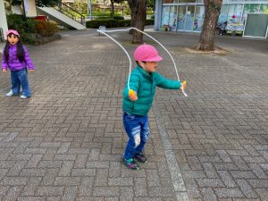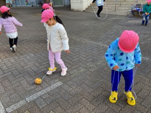 最近さくら組さんはお外用縄跳びとポックリを買ってもらい流行中!