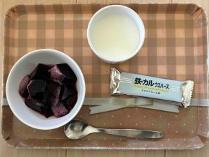 牛乳、ぶどうゼリー、カルシウムウエハース