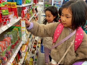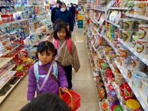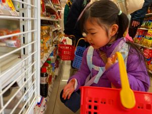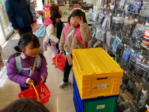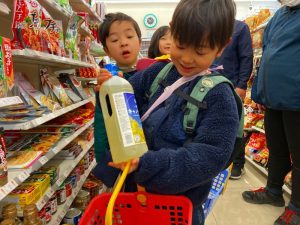 ひとり一つ買い物かごを持ってお目当ての商品を探しに行きます。