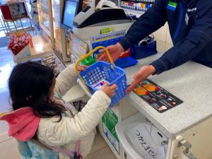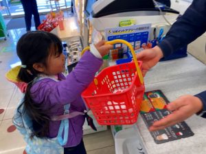 実際に自分が考えた言葉で店員さんにお会計をお願いしていました。