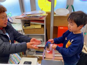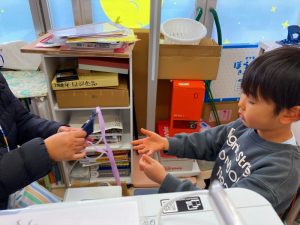 すると自分たちで考えて、自分たちの言葉で伝えながら園長先生にお金を返すことができました!