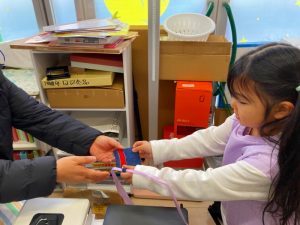 少しみんなで遊んだ後は園に戻って買ったもののお披露目会です!