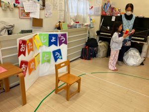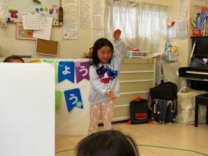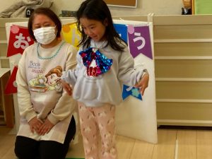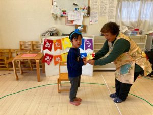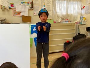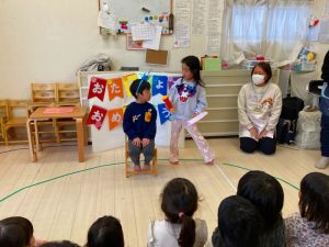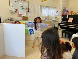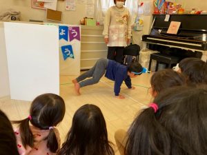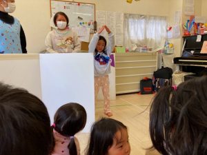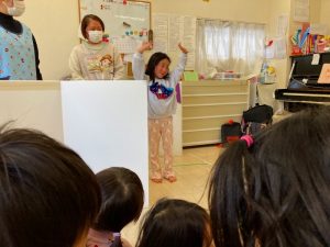 今月の保育者からのお楽しみは「ジェスチャーゲーム」