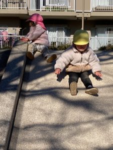みんなで滑り台をしたり追いかけっこをしたりして沢山身体を動かして遊んでいましたよ!すみれ組さんと手を繋いだり、「一緒に遊ぼう!」と声を掛けて仲良く遊んだりと、優しいお兄さんお姉さんでした😊