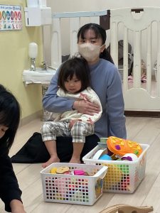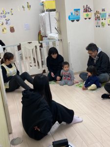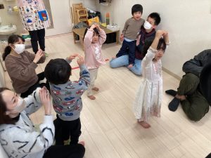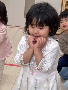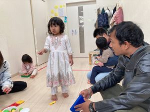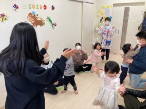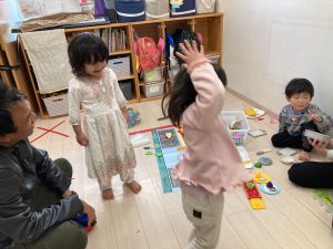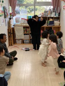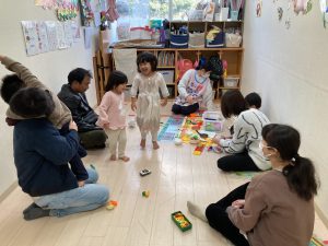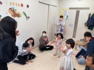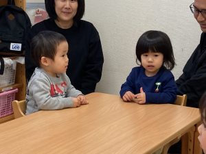 今日は、すみれ組・たんぽぽ組の英語教室の保育参加がありました。