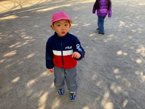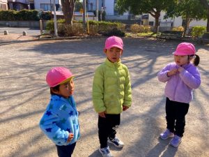 来年度の練習も兼ねて年中さんとたんぽぽ組さん、年長さんと年少さんで手を繋ぎ歩きました。