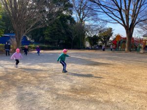 さくら組さんの男の子を中心にはまっている逃走中ごっこを楽しんだりしてたくさん身体を動かしました。
