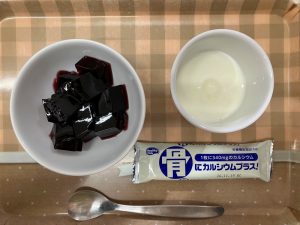 牛乳、ぶどうゼリー、カルシウムウエハース