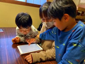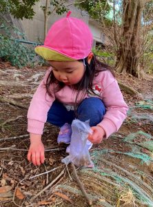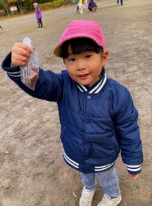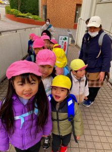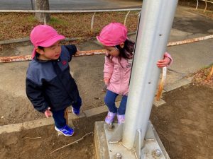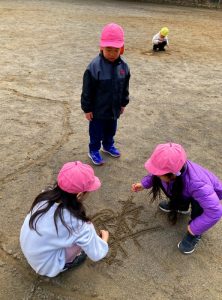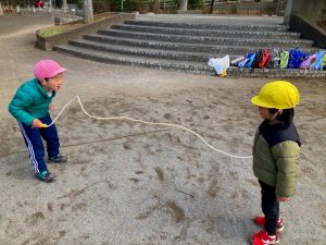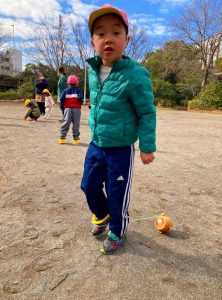 年少さん、年長さんはたんぽぽ組さんと一緒に広場に行きました。