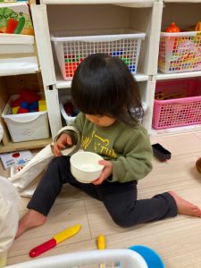 お部屋では、おままごとをしたり、働く車を走らせたりしながら遊んでいます🍀