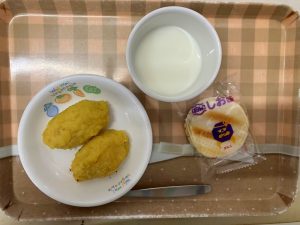 牛乳、スイートポテト、せんべい