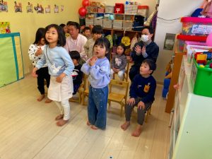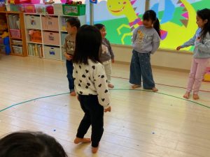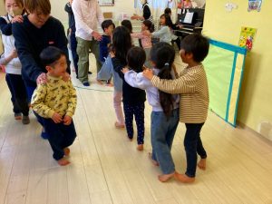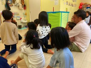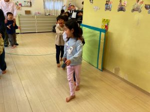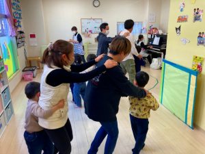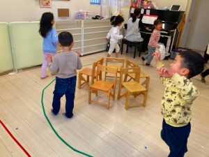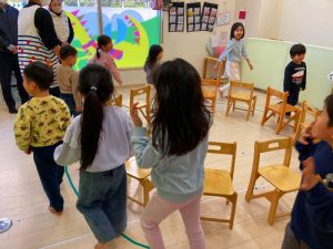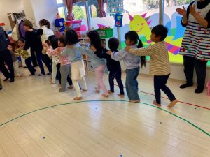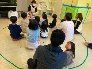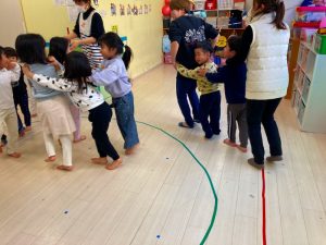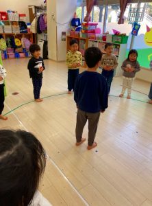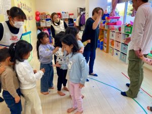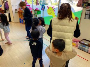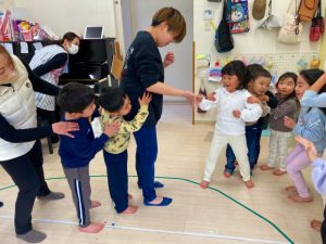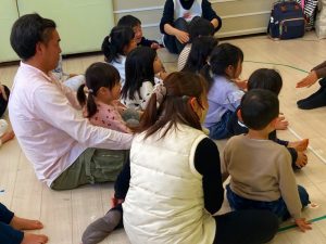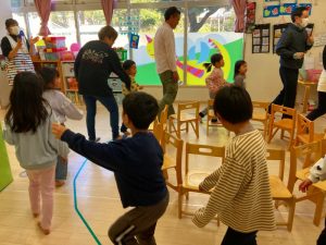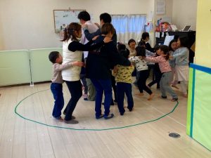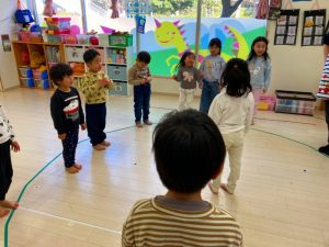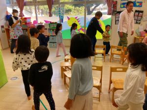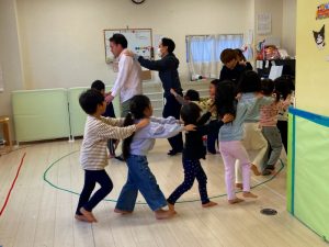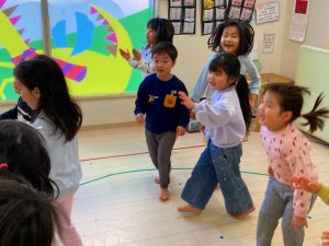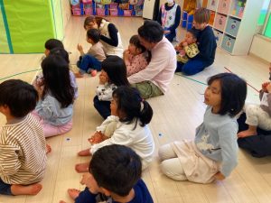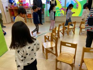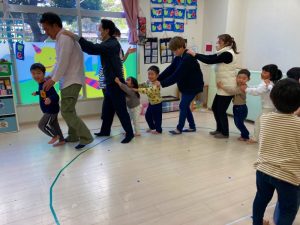 英語が始まる前に保護者の皆さんと一緒に様々なゲームをしました。
