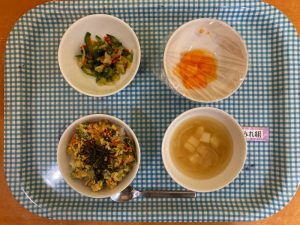 明日はひなまつり会、給食、おやつも特別メニューと1日、ひなまつり尽くしですのでお楽しみに・・・!