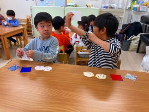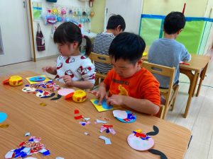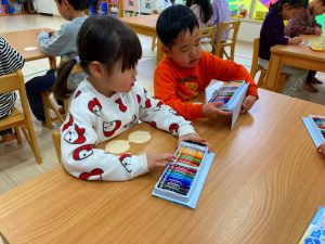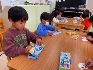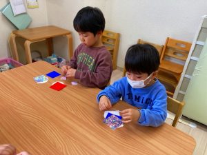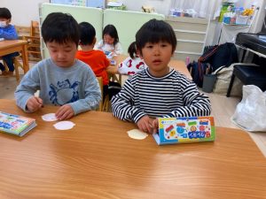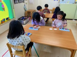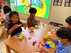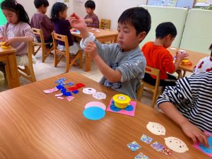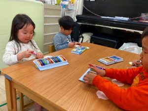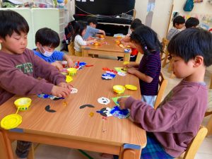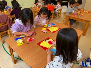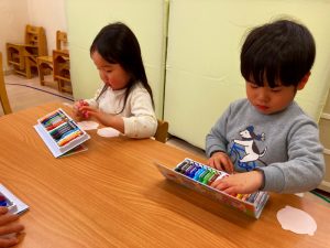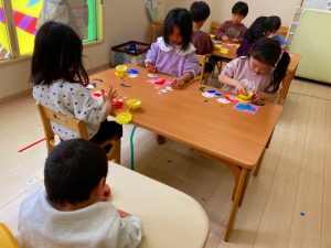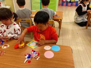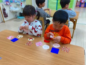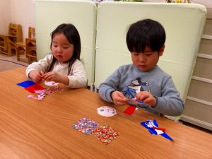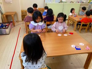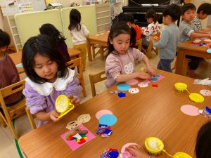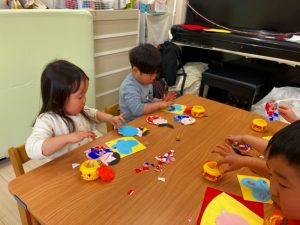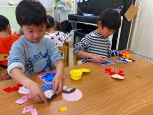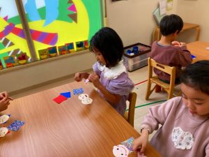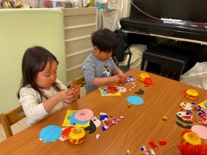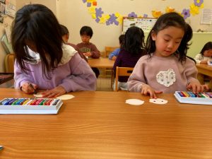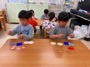 さくら組さんはお部屋で3月の月製作をしました。
