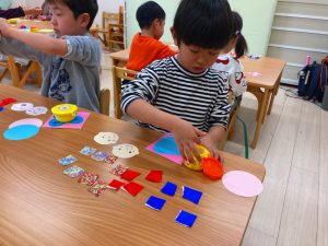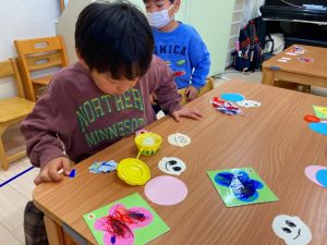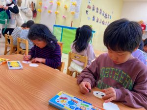 乾かしている出来上がった製作を見て明日のひなまつり会もより楽しみになっている子ども達です♪