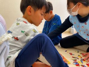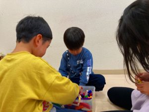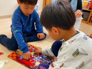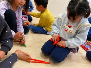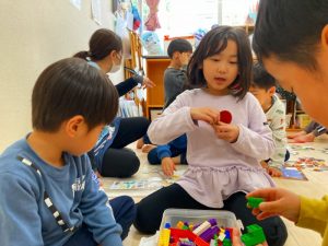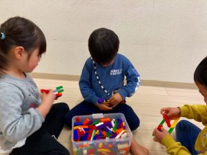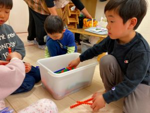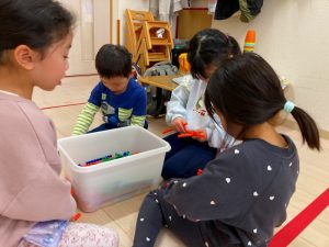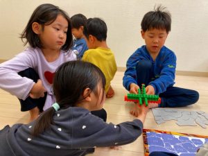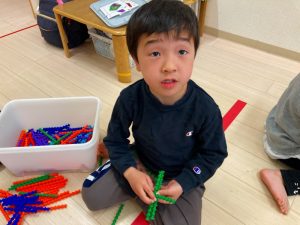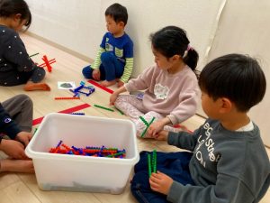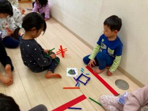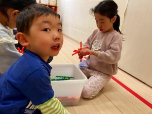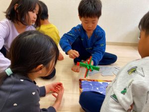 「これどうやって作るの?」「みてて!こうやってこうやってやるんだよ!」とお友だち同士で教え合いながら色々な物を作っていました!