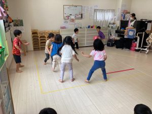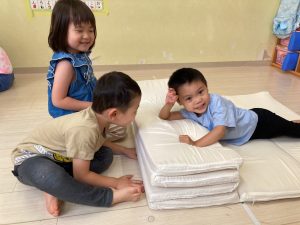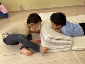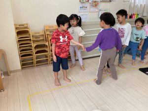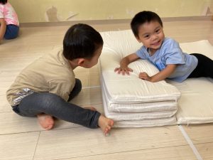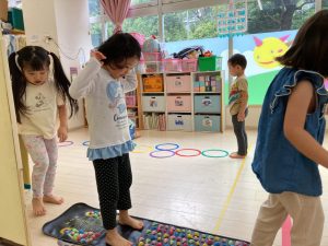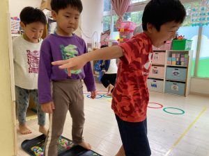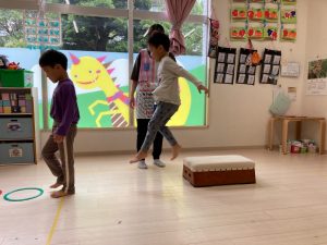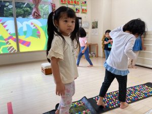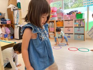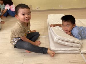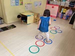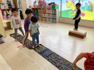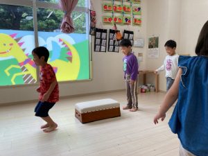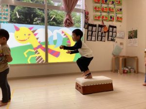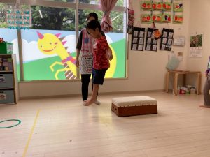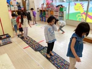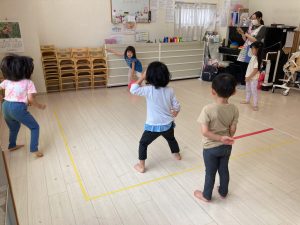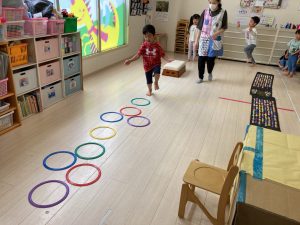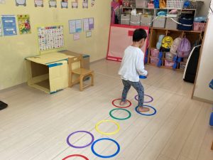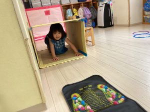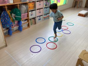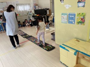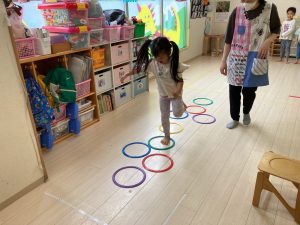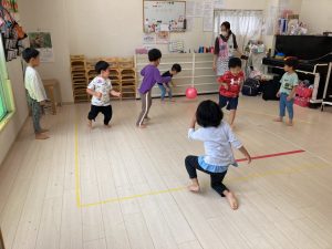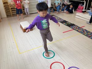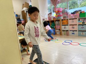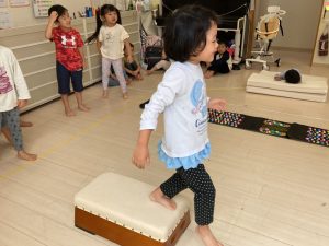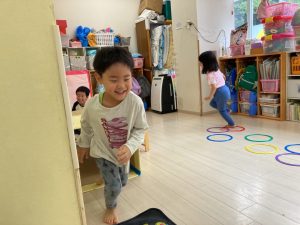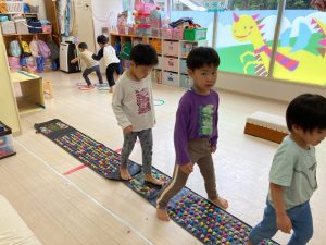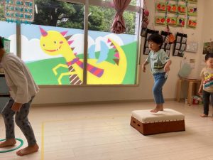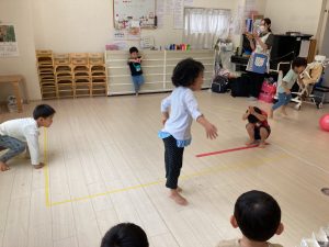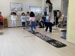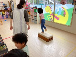 サーキット遊びでは、年中・年長さんの運動会の親子競技の練習を初めに行い、その後に年少さんも一緒に楽しみました(^^♪