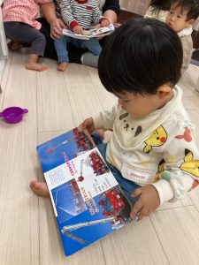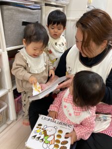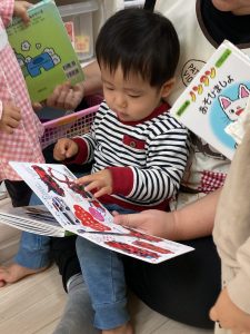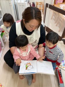 みんな絵本が好きで、保育者に読んでもらうのが大好きです。