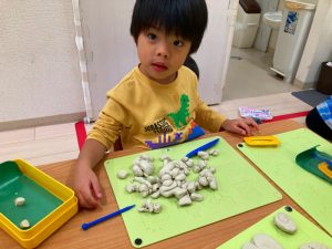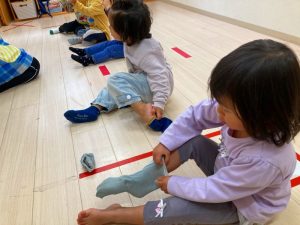 お部屋で靴下を履き、帽子をかぶって出発です。😊
