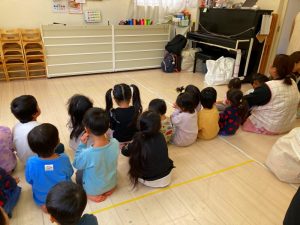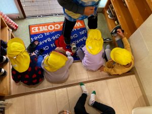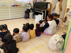 その後は、全クラスさくら組に集合して、不審者訓練に参加しました。