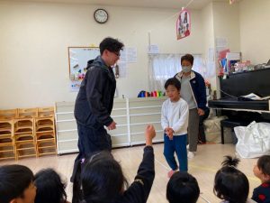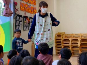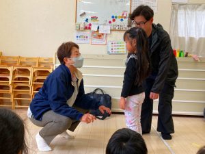 知らない人に声を掛けられた場合の断り方を年長さんが挑戦しました。