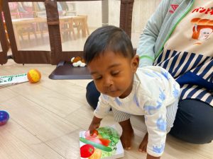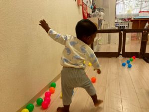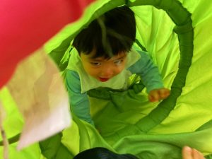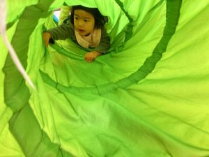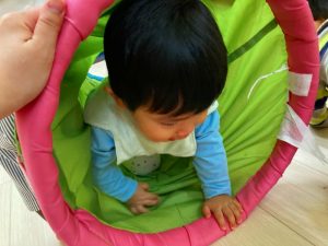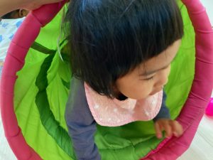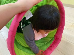 お部屋に戻ってから、お茶休憩をして、カラーボールとトンネルで遊びました♪