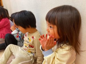 ちゅうりっぷ・すみれ組さんは、お部屋でのんびり遊んだ後、