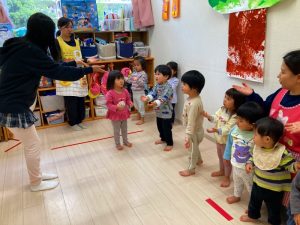 前回もやったことを覚えているお友達もいて、楽しそうに発音を真似したり、