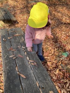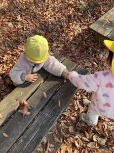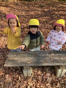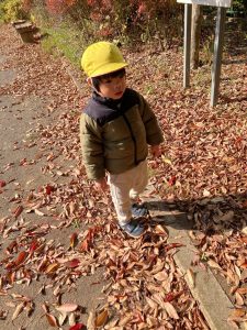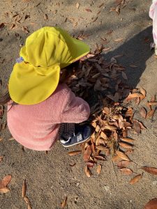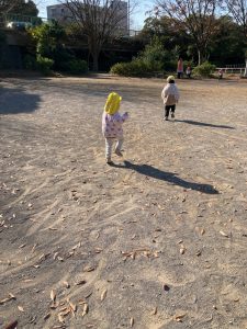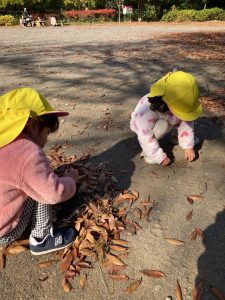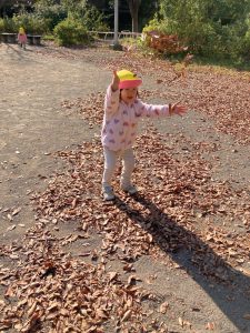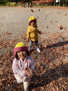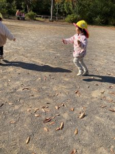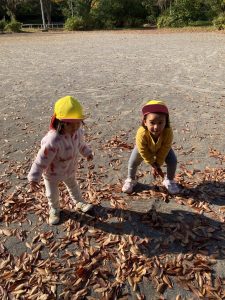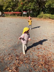 追いかけっこや砂遊びをしたり、落ち葉の感触や音を楽しんだり散らしたりしてたくさん遊びました♪