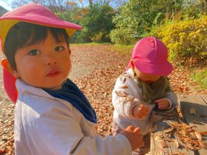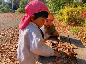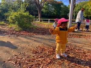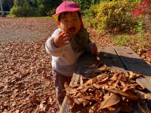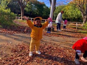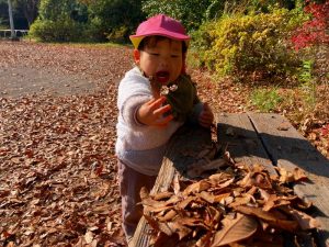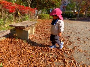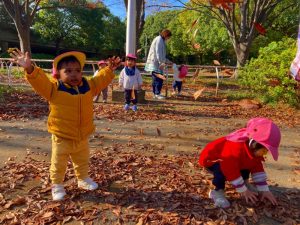 広場には落ち葉がたくさんあるので、
