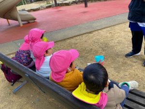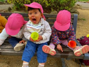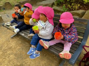 お茶を飲んで一息ついてから、グルっと遠回りでお散歩して園に戻りました(^^♪