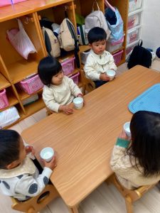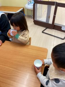 朝の水分補給の牛乳を飲むのもすっかり上手になりました🐄