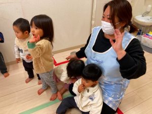 それから寒さに負けず、園舎前で遊びました(*^▽^*)
