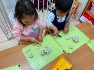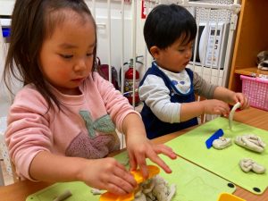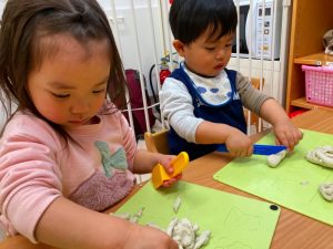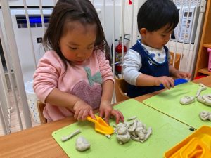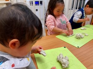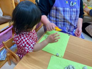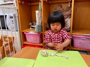その後、ちゅうりっぷ・すみれ組さんはお部屋で粘土をしました☆彡